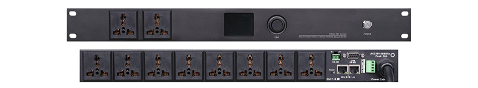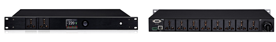 电源输出接口:8路智能控制,2路直通输出 1U设备尺寸 483×320×45mm