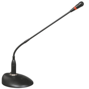 这是一款阔频宽的电容式心形指向性话筒,话筒采用短咪杆、高灵敏度设计,外观简洁大气。话筒咪芯部分采用橡胶避震材料,使其尽可能的避免了台面噪声对话筒拾音的影响。话筒外观造型上采用金属氧化面板,简洁硬朗的外观设计表现出简约庄重风格。此会议话筒专门服务于高端会议市场,设计于增强拾音、专业录音、电视广播、会议等高要求的拾音应用场所。