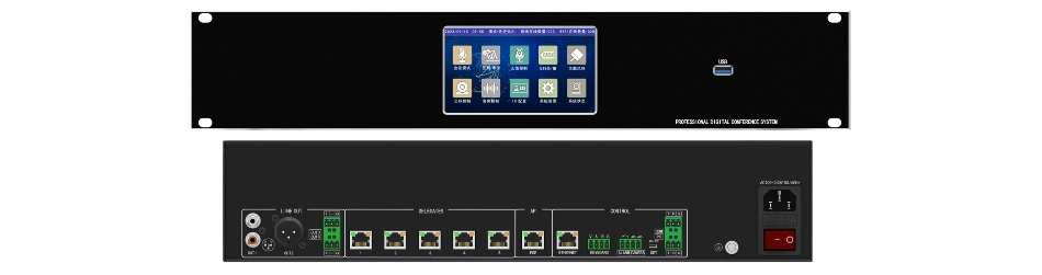 ★ 会议单元接口:RJ45网口*5